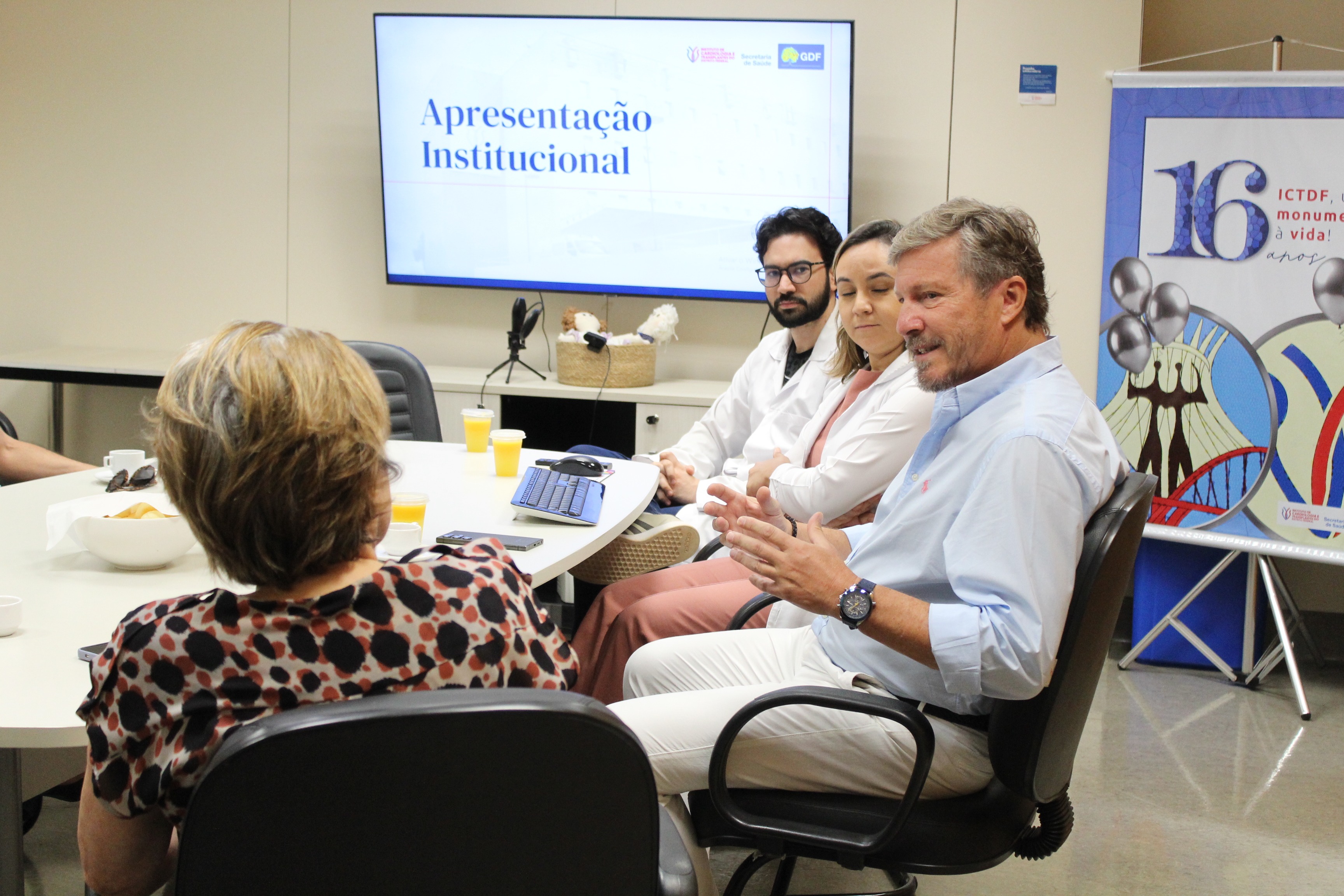 Os executivos foram recebidos pelo interventor do ICTDF, Marcus Costa, pela coordenadora da Central Estadual de Transplantes do Distrito Federal, Daniela Salomão, pela coordenadora de Transplantes do ICTDF, Carolina Couto, pela gerente adjunta de Assistência, Maria de Lourdes, pelo gerente geral de Relações Institucionais e Operacional, Delmo Menezes, e pelo coordenador do Programa de Transplante Hepático, Rafael Filgueiras.