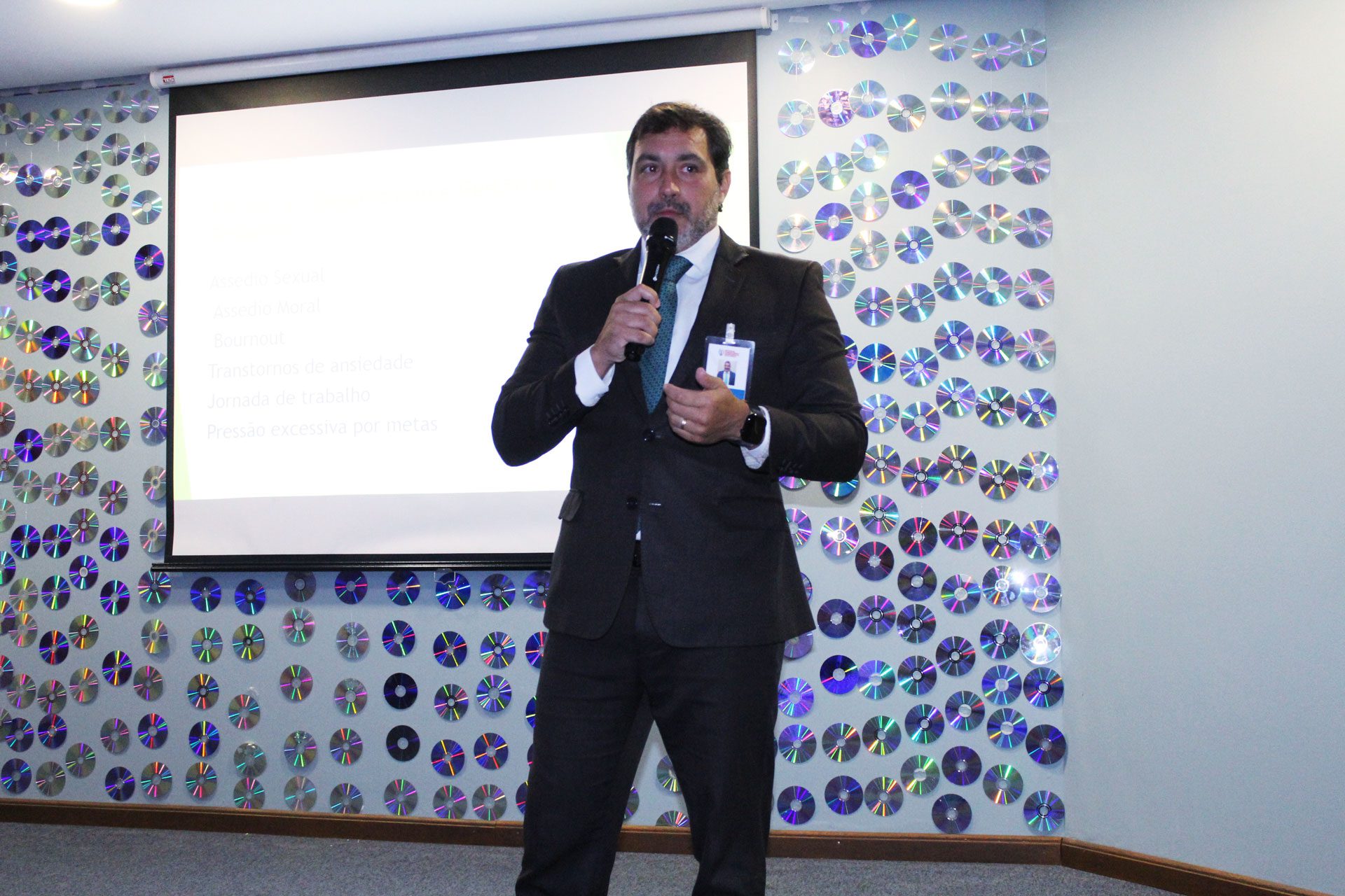 A palestra de abertura, “Riscos Psicossociais Relacionados ao Trabalho”, foi conduzida pelo advogado trabalhista Rodrigo Figueiredo, que abordou aspectos da evolução dos cuidados com a saúde mental no trabalho e os desafios atuais das organizações na prevenção de riscos psicossociais.