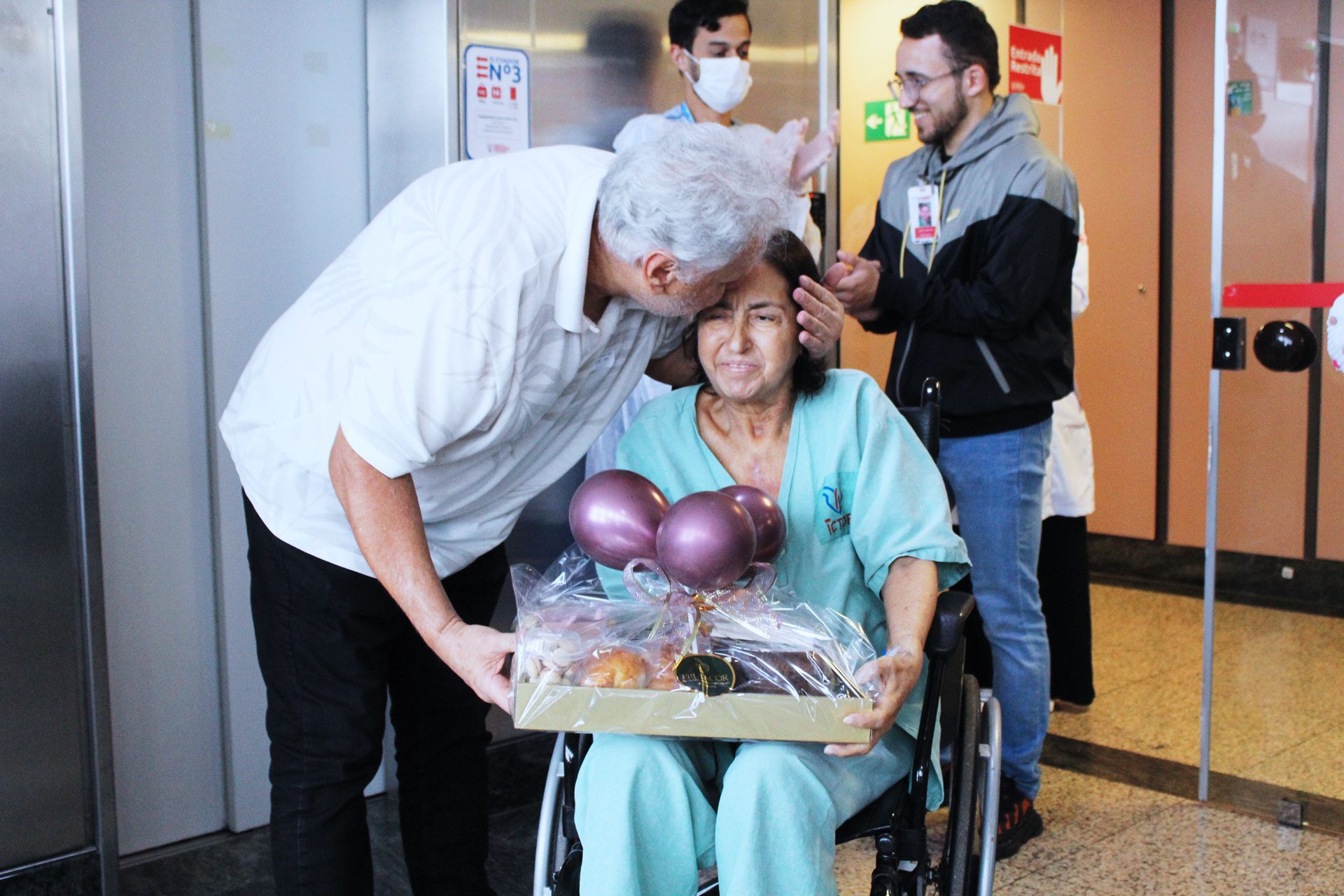 Vinda de Uberlândia (MG) ao lado do marido, Altamir, seu companheiro inseparável, Ivonilda enfrenta há meses uma jornada marcada por desafios, fé e perseverança. Embora ainda não tenha recebido alta devido a algumas intercorrências clínicas, sua presença no hospital se tornou símbolo de coragem e resiliência.